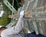 屋根・外壁の施工はもちろん、下地となる木工大工や鉄骨の切断・溶接など、家屋の修理全般に対応できる高い技術力が強みです。特に、金属屋根や銅板加工、社寺仏閣の改修といった専門性の高い分野にも実績があります。