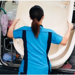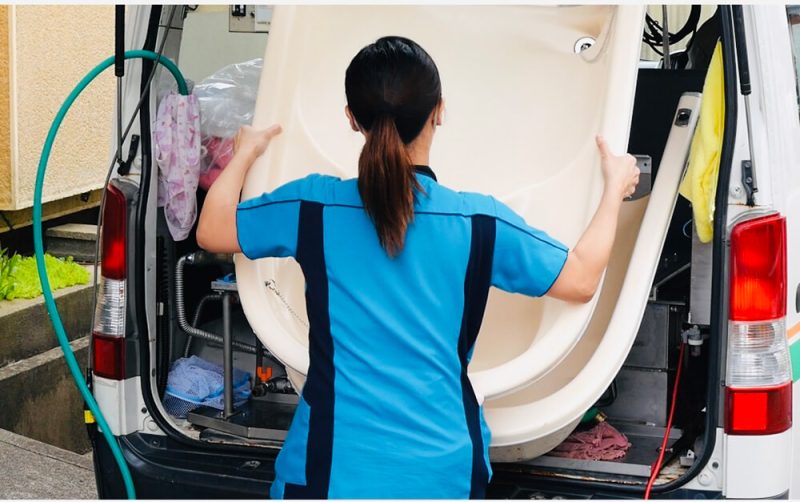 □訪問入浴介護事業: ご自宅での入浴が難しい方のために、専用の浴槽を持ち込み、安全かつ快適な入浴の介助を行います。