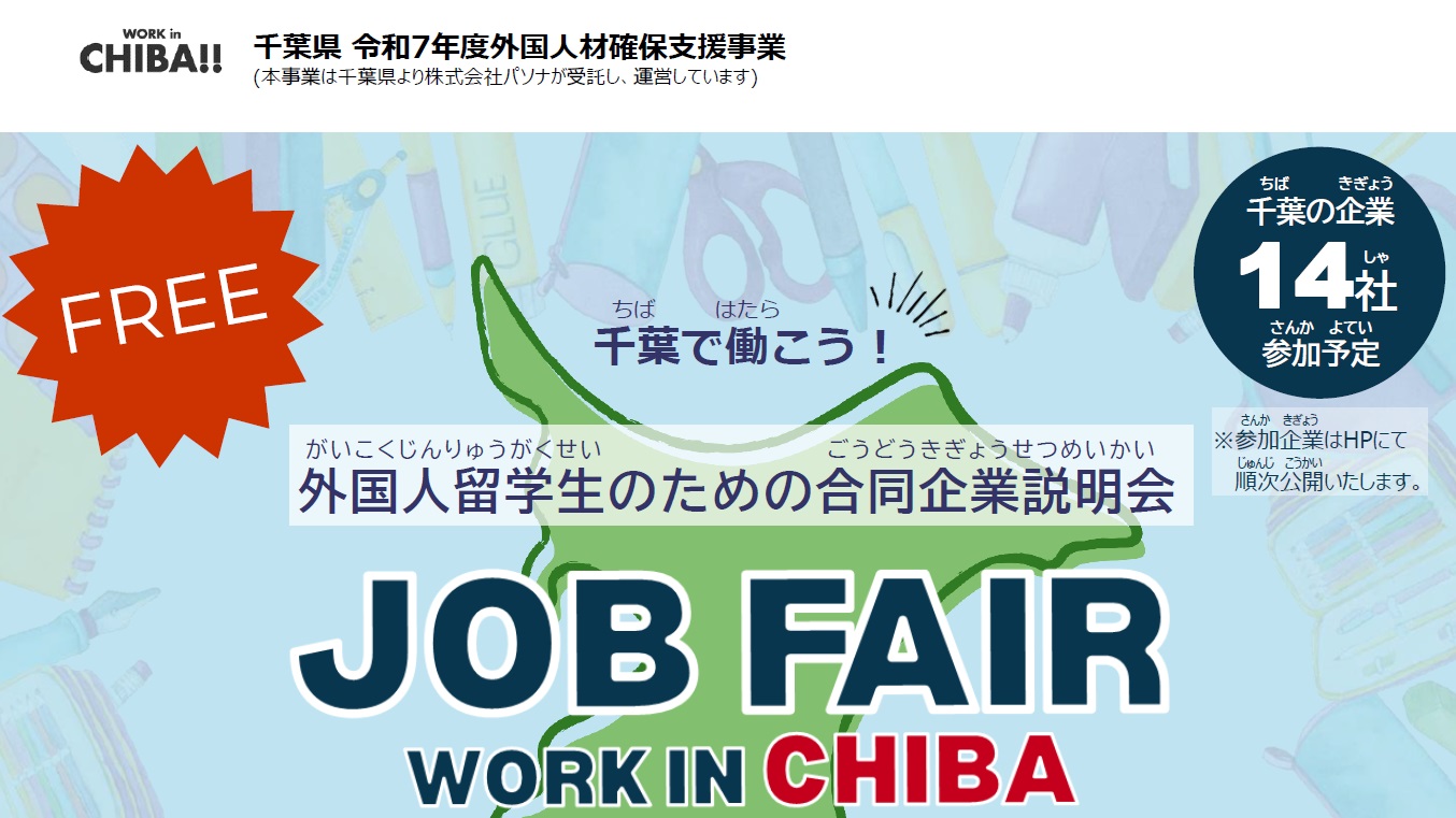 トップページ > イベント・セミナー > 合同企業説明会 > 外国人留学生のための合同企業説明会 JOB FAIR WORK IN CHIBA