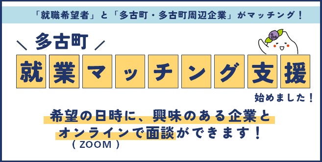 「就職希望者」と「多古町や多古町周辺企業」がマッチングする『多古町就業オンラインマッチング』を開始しました。(町が仲介してオンライン面談を設定します!)