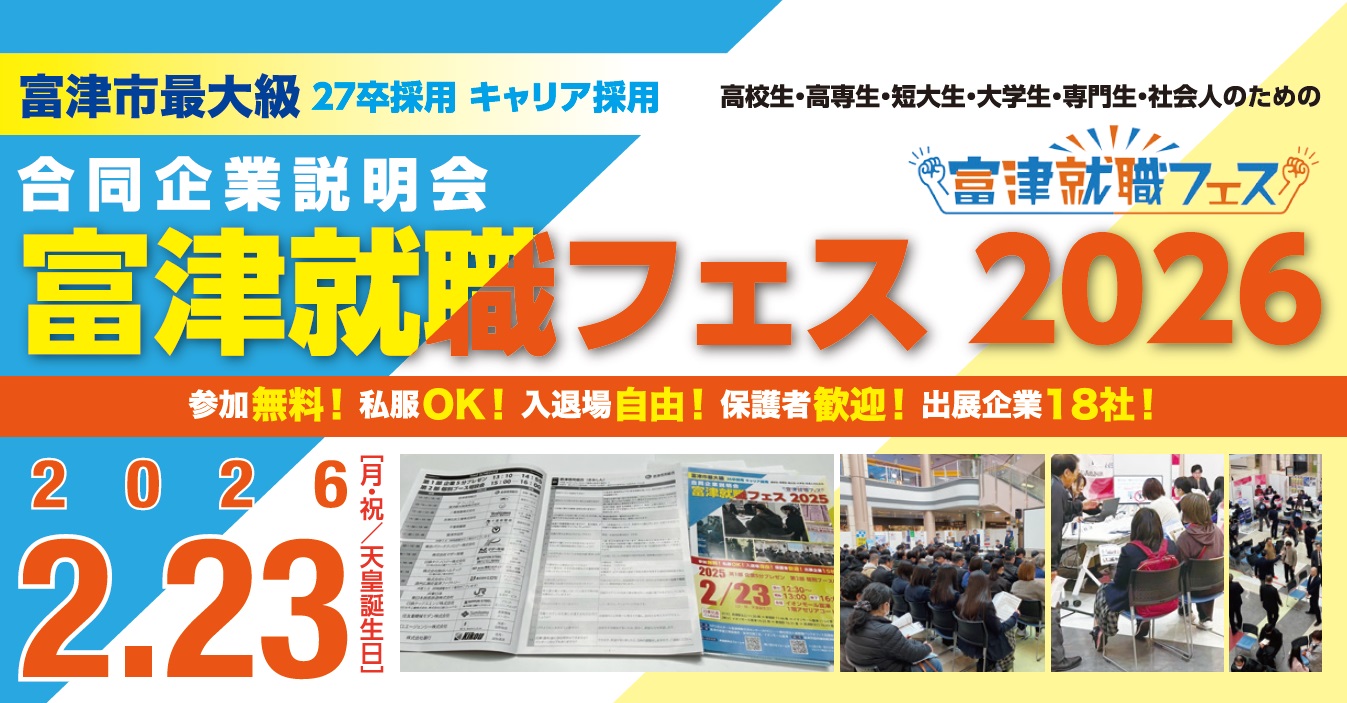 | 後援 | 富津市、ハローワーク木更津、ポリテクセンター君津、ちば南部地域若者サポートステーション、かずさエフエム株式会社 |