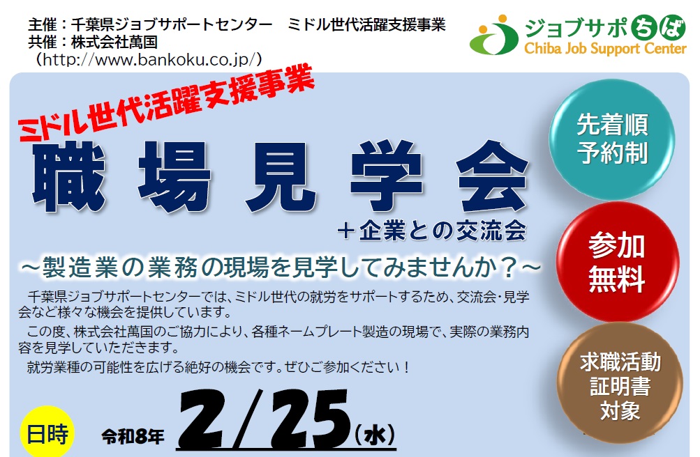 2月25日開催_ミドル世代対象_職場見学会チラシ_株式会社萬国