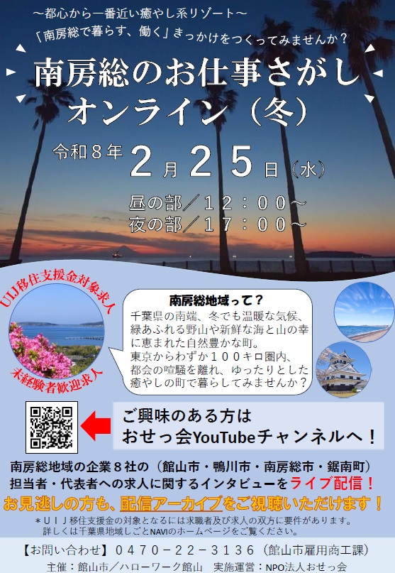 「南房総のお仕事さがしオンライン(冬)」を開催します!