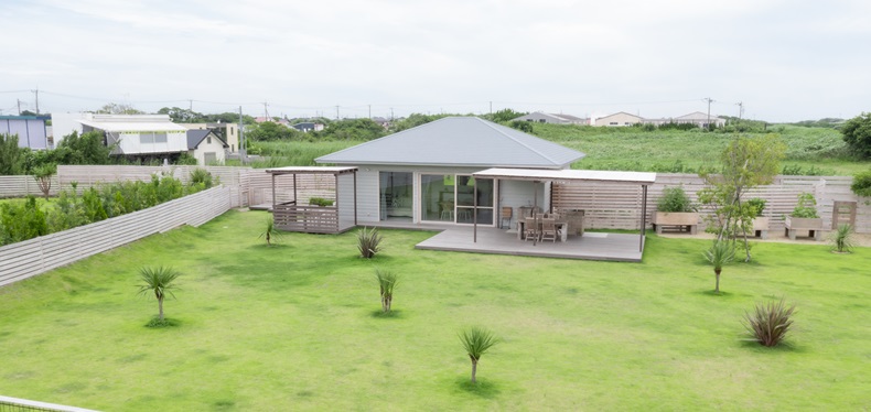 天然芝など自然素材にこだわった、ワンちゃんファーストのドッグコテージです。